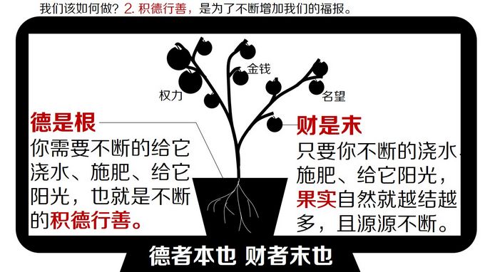 金钱、权力、名望都是自己的福报,都是压自己的物啊,您能承载的了吗?靠什么承载,靠符合万物规律的德行。